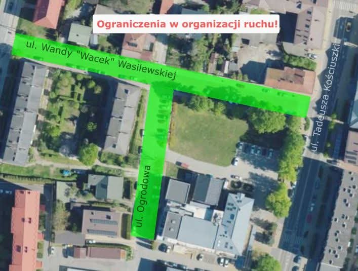 - wjazd na ul. Wandy „Wacek” Wasilewskiej od strony ul. Tadeusza Kościuszki – zakaz wjazdu