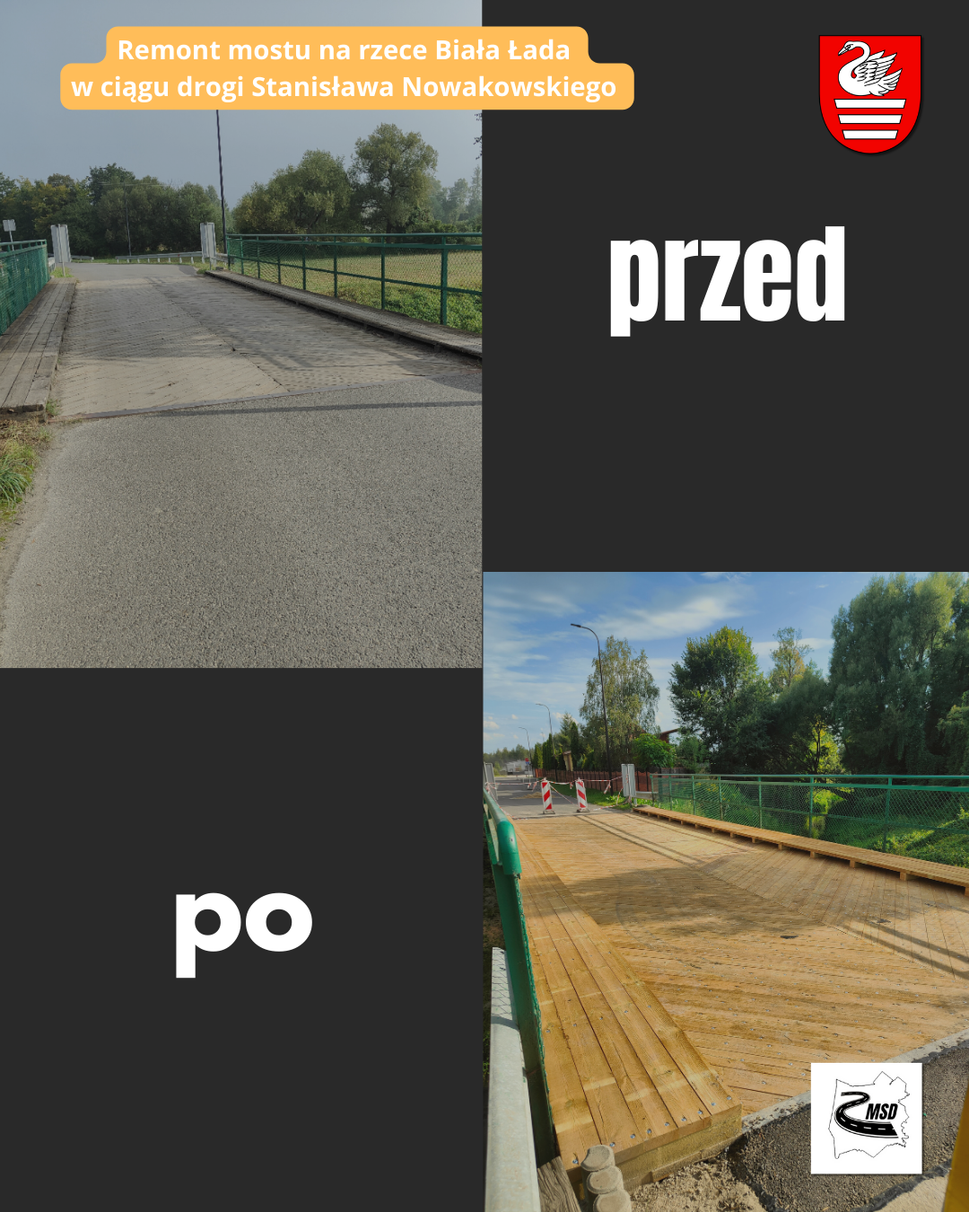 Dziękujemy mieszkańcom za cierpliwość i wyrozumiałość podczas prowadzonych prac. Most jest już w pełni przejezdny i bezpieczny dla wszystkich użytkowników.