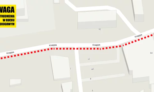 2025-02-04 Czasowe zmiany w organizacji ruchu na ul. Stefana Knappa Informujemy wszystkich mieszkańców, że na ul. Stefana Knappa trwają prace budowlane, w związku z czym wprowadzona została tymczasowa organizacja ruchu. Prosimy wszystkich kierowców i pieszych o dostosowanie się do nowych zasad, które będą obowiązywały etapami, w zależności od postępu robót. Z uwagi na prowadzone równolegle inwestycje – zarówno w szkole, jak i na ul. Stefana Knappa oraz Singera – apelujemy o szczególną ostrożność i ścisłe przestrzeganie oznakowania oraz komunikatów. Prosimy o cierpliwość i wyrozumiałość, gdyż wkrótce będziemy mogli cieszyć się poprawioną i nowoczesną infrastrukturą. Czytaj dalej > -